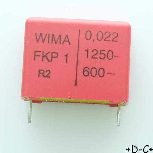 Condensateur impulsion FKP1 22nF 1250VDC 600VAC 10.5x20.5x26.5mm pas22 5% Wima