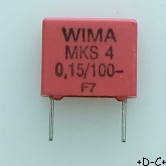 Condensateur film PET MKS4 150nF 100VDC 63VAC 3x8.5x10mm pas7.5 10% Wima