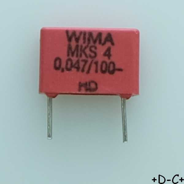 Condensateur film PET MKS4 47nF 100VDC 63VAC 2.5x7x10mm pas7.5 10% Wima