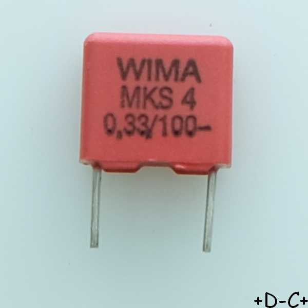 Condensateur film PET MKS4 330nF 100VDC 63VAC 4x9x10mm pas7.5 10% Wima