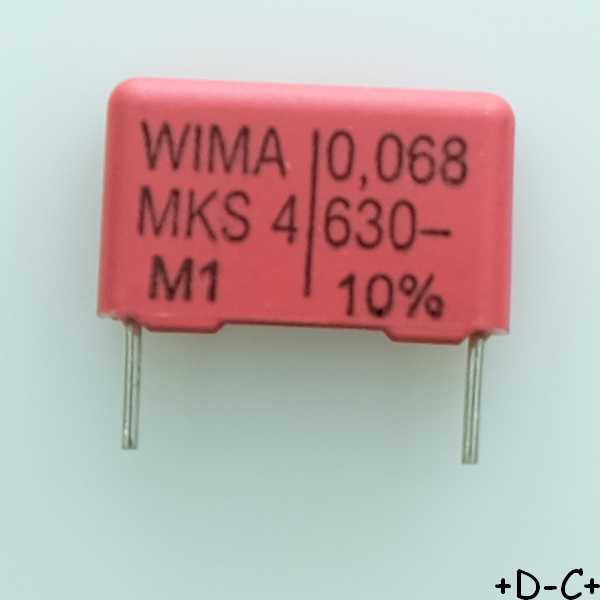 Condensateur film PET MKS4 68nF 630VDC 400VAC 5x11x18mm pas15 10% Wima